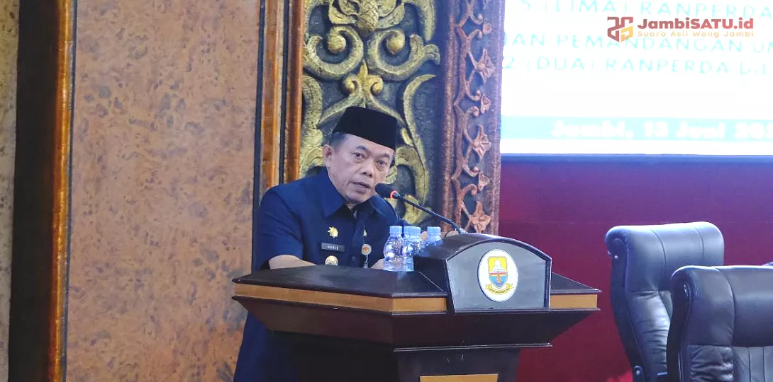 Jambi - Gubernur Jambi Dr. H. Al Haris, S.Sos. MH, menyampaikan bahwa Pemerintah dan DPRD dapat menyamakan persepsi dan pendapat menuju pembangunan Jambi Mantap yang lebih baik, dengan tetap berpedoman pada ketentuan peraturan perundang-undangan yang berlaku dan menghargai pertimbangan-pertimbangan, aspirasi, dan pendapat secara proporsional. Hal tersebut disampaikan Gubernur saat menghadiri rapat paripurna DPRD Provinsi Jambi, tentang Penyampaian Pendapat Gubernur Jambi terhadap 5 (Lima) Ranperda Inisiatif DPRD Provinsi Jambi Tahun 2025, bertempat di Ruang Rapat Utama Gedung DPRD Provinsi Jambi, Jum'at (13/06/2025) sore.