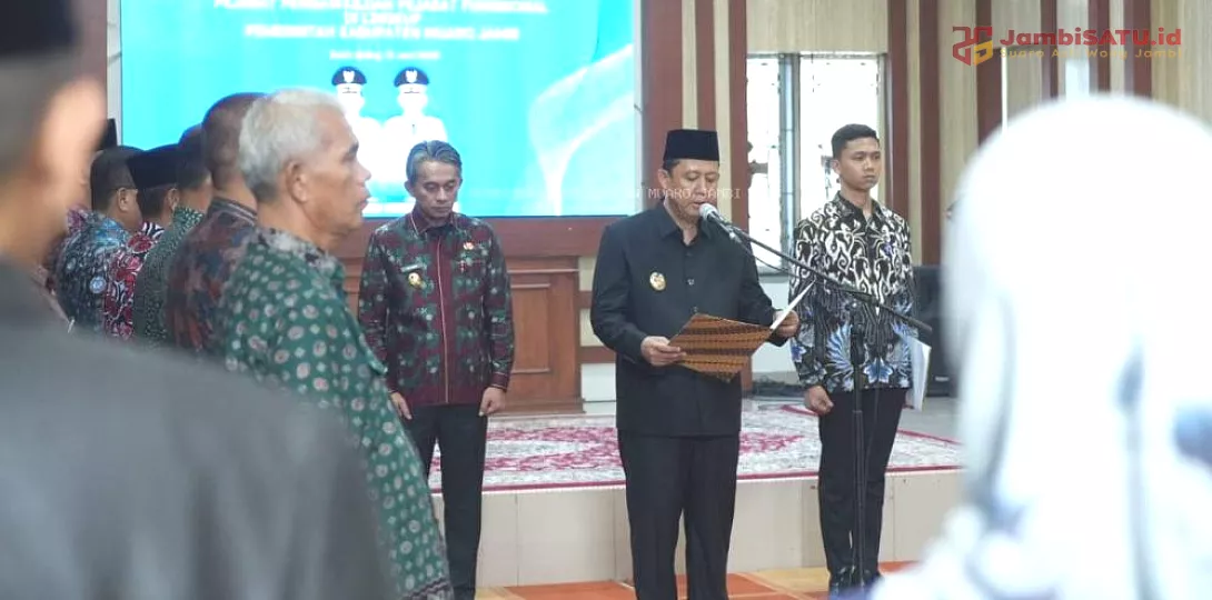 Muaro Jambi — Pemerintah Kabupaten Muaro Jambi melaksanakan pelantikan dan pengambilan sumpah jabatan terhadap 56 pejabat baru yang akan mengisi berbagai posisi strategis di lingkungan pemerintahan daerah. Prosesi tersebut berlangsung di Aula Rumah Dinas Bupati pada Jumat (13/6/2025) dan dipimpin langsung oleh Bupati Muaro Jambi, H. Bambang Bayu Suseno (BBS).