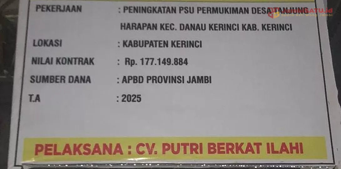 Sorotan tajam tertuju pada proyek peningkatan jalan cor di Desa Tanjung Harapan, Kecamatan Danau Kerinci, senilai Rp 177 juta. Warga menemukan papan proyek baru dipasang setelah pekerjaan berjalan—dan pelaksana kegiatan pun baru diketahui belakangan.