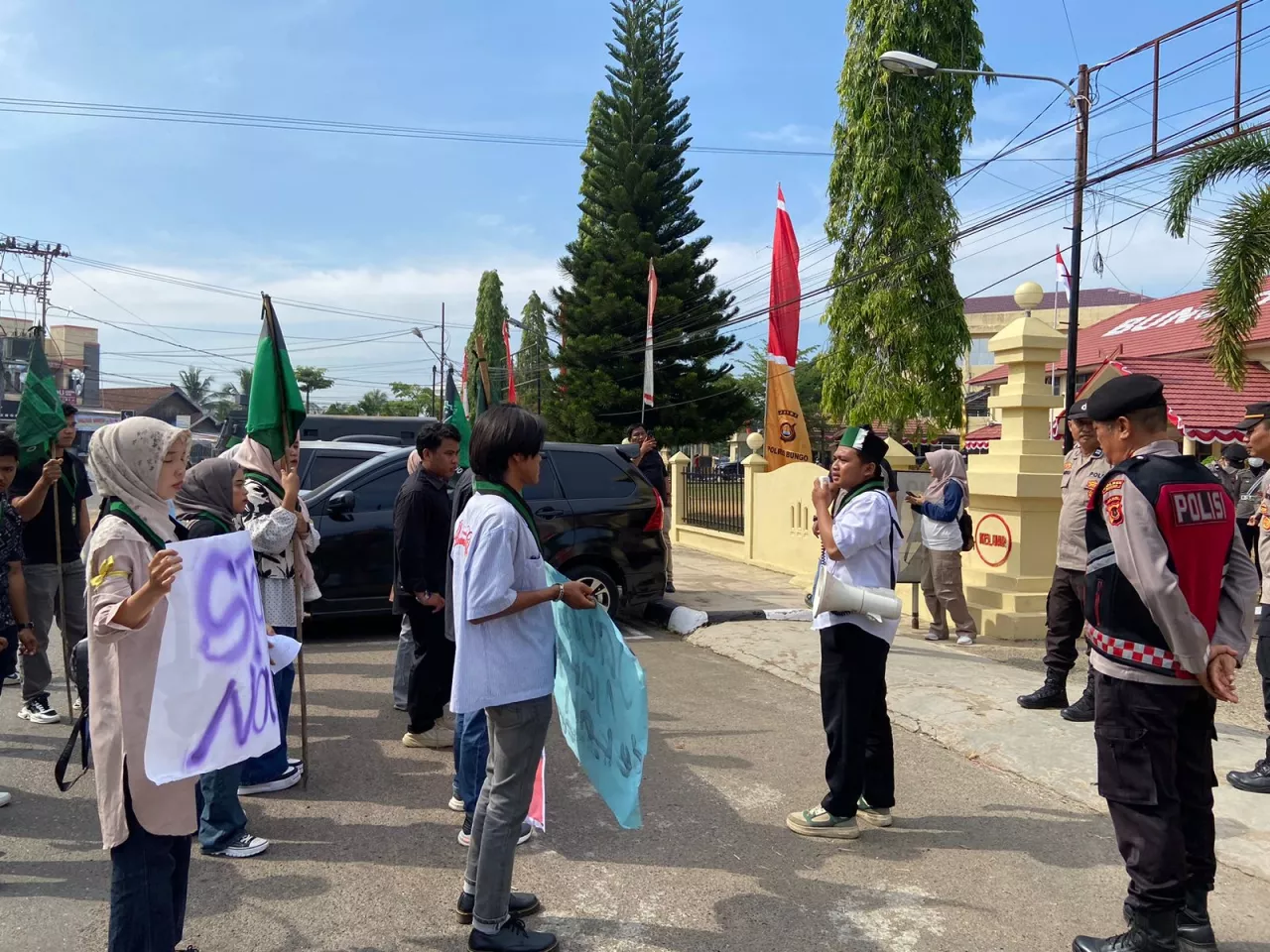 Bungo - Himpunan Mahasiswa Islam (HMI) Cabang Bungo menggelar aksi damai sebagai bentuk kepedulian terhadap meningkatnya penyalahgunaan dan peredaran narkoba di Kabupaten Bungo. Aksi ini berlangsung aman dan tertib di depan Kantor Polres Bungo, disertai orasi dari para kader HMI dan penyampaian aspirasi kepada aparat penegak hukum.