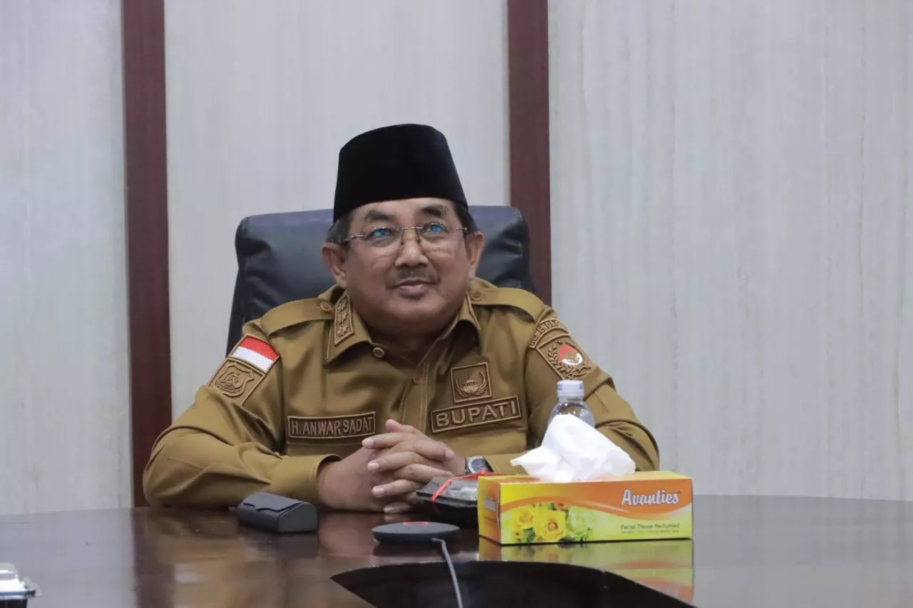 Kuala Tungkal – Bupati Tanjung Jabung Barat, Drs. H. Anwar Sadat, M.Ag, mengikuti secara virtual acara Peluncuran dan Peresmian Logo serta Tema Hari Ulang Tahun (HUT) ke-80 Republik Indonesia melalui Zoom Meeting dari Ruang Rapat Bupati, Rabu (23/7).
