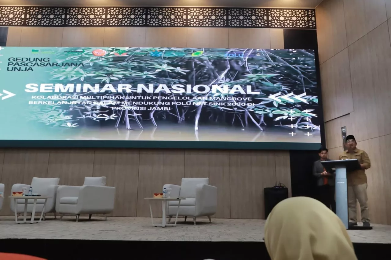 Jambi – Bupati Tanjung Jabung Barat, Drs. H. Anwar Sadat, M.Ag secara resmi membuka Seminar Nasional Forum Pelestarian Mangrove Pangkal Babu dengan tema “Kolaborasi Multipihak untuk Pengelolaan Mangrove Berkelanjutan dalam Mendukung FOLU Net Sink 2030 di Provinsi Jambi”, yang digelar di Gedung Pascasarjana Universitas Jambi, Sabtu (26/7).